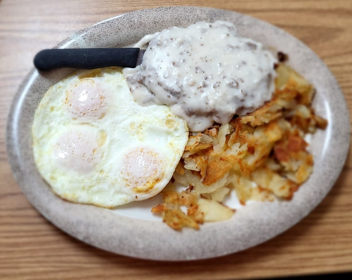 Breakfast is a clear highlight, making it a good morning stop for those who appreciate traditional plates like eggs cooked to order accompanied by home fries and toast, or heartier options such as country fried steak with sausage gravy. The menu also offers plenty of variety beyond breakfast, including sandwiches, fish and chips, and a chicken strip dinner, catering both to folks craving classic diner staples or a casual meal with friends or family.